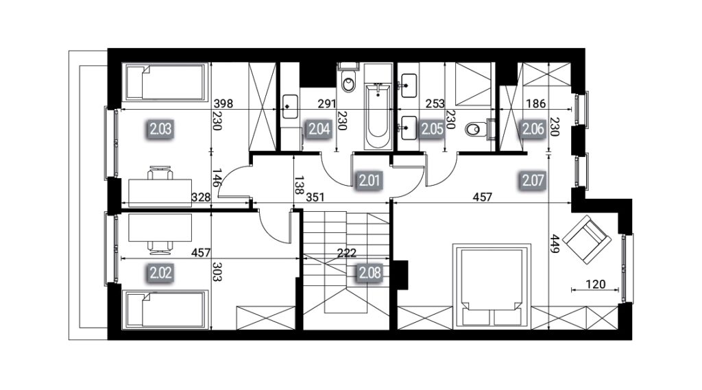 | 2 | A | 0 | 6 | 281.23m2 | 278.64m2 | Brak | 2 | Sprzedane | NR:Nr:2 Typ: A Piętro: 0 Pokoje: 6 Pow:Pow: 281.23m2 Działka:278.64m2 Budynek: 2 Sprzedane | ||